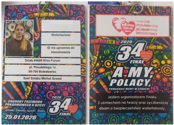 Wolontariuszom pracującym podczas 34. Finału Wielkiej Orkiestry Świątecznej Pomocy: