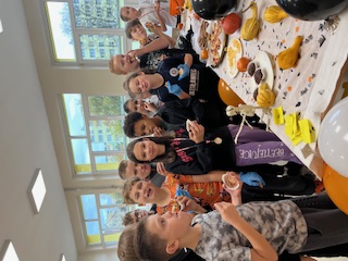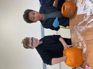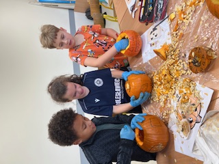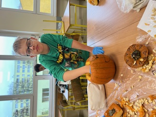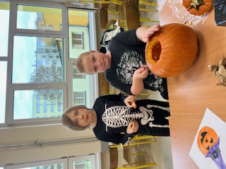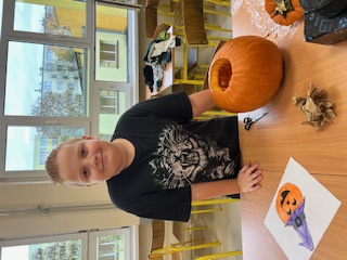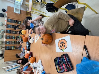 W klasie IV d odbyło się niezwykłe, pełne emocji i tajemnic Halloweenowe spotkanie z duchami i czarami. To wyjątkowe wydarzenie wprowadziło uczniów w magiczny nastrój jesieni i stało się wspaniałą okazją do wspólnej zabawy, rozwijania kreatywności oraz integracji całej klasy. Już od rana dzieci z niecierpliwością czekały na to spotkanie. Sala została udekorowana w prawdziwie halloweenowym stylu – pojawiły się pająki, pajęczyny, balony i lampiony z dyni. Uczniowie wspólnie rozwieszali ozdoby, tworząc niesamowity klimat rodem z zaczarowanego świata. Podczas zajęć odbyły się zagadki halloweenowe, kalambury i plastyczne wyzwania – dzieci kolorowały dynie. W ten sposób utrwalały słownictwo związane z jesienią i Halloween, jednocześnie świetnie się bawiąc. Największą atrakcją i wyzwaniem było wycinanie dyni, która miała posłużyć za lampion.