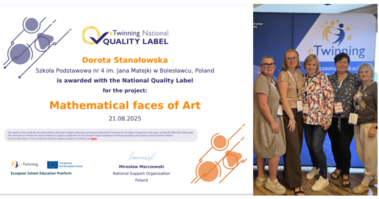 Congratulations! You have been awarded the eTwinning National Quality Label for your participation in the project “Mathematical faces of Art”. Your National Support Organisation left the following note when reviewing your application.
