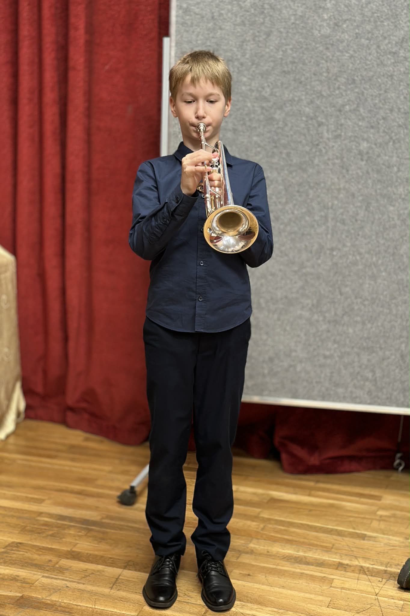 Z klasy 3b Staś Sponar – gra na trąbce,