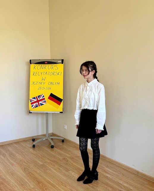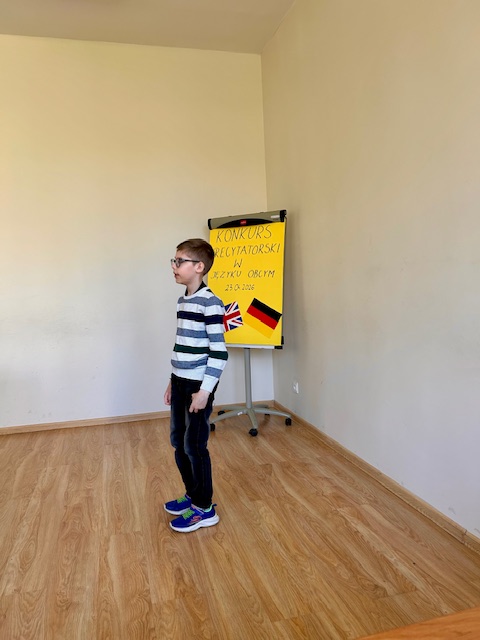 Wielkie brawa należą się wszystkim piętnastu deklamującym uczniom, którzy 23 kwietnia 2026r. zaprezentowali na Szkolnym Konkursie Recytatorskim w Języku Obcym wysoki poziom, wykazując się dobrą wymową i dykcją, ciekawą interpretacją utworów, a przede wszystkim odwagą i pracowitością.