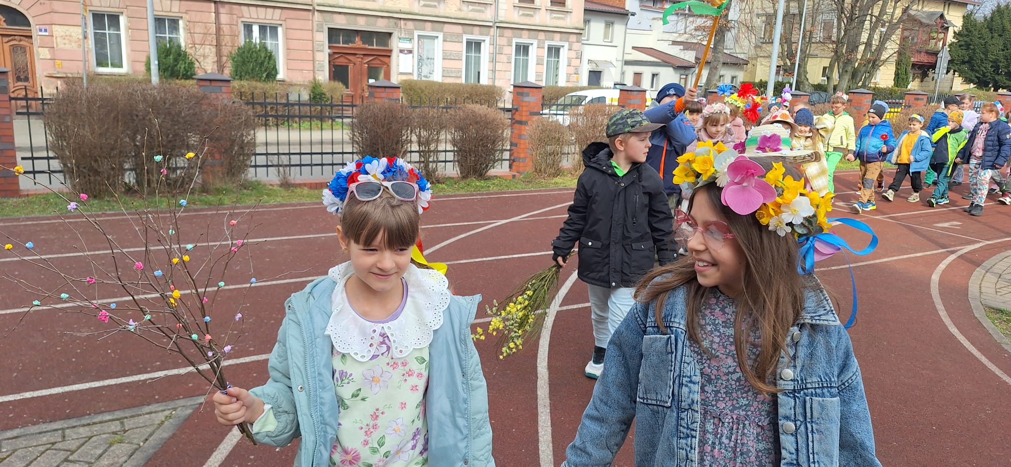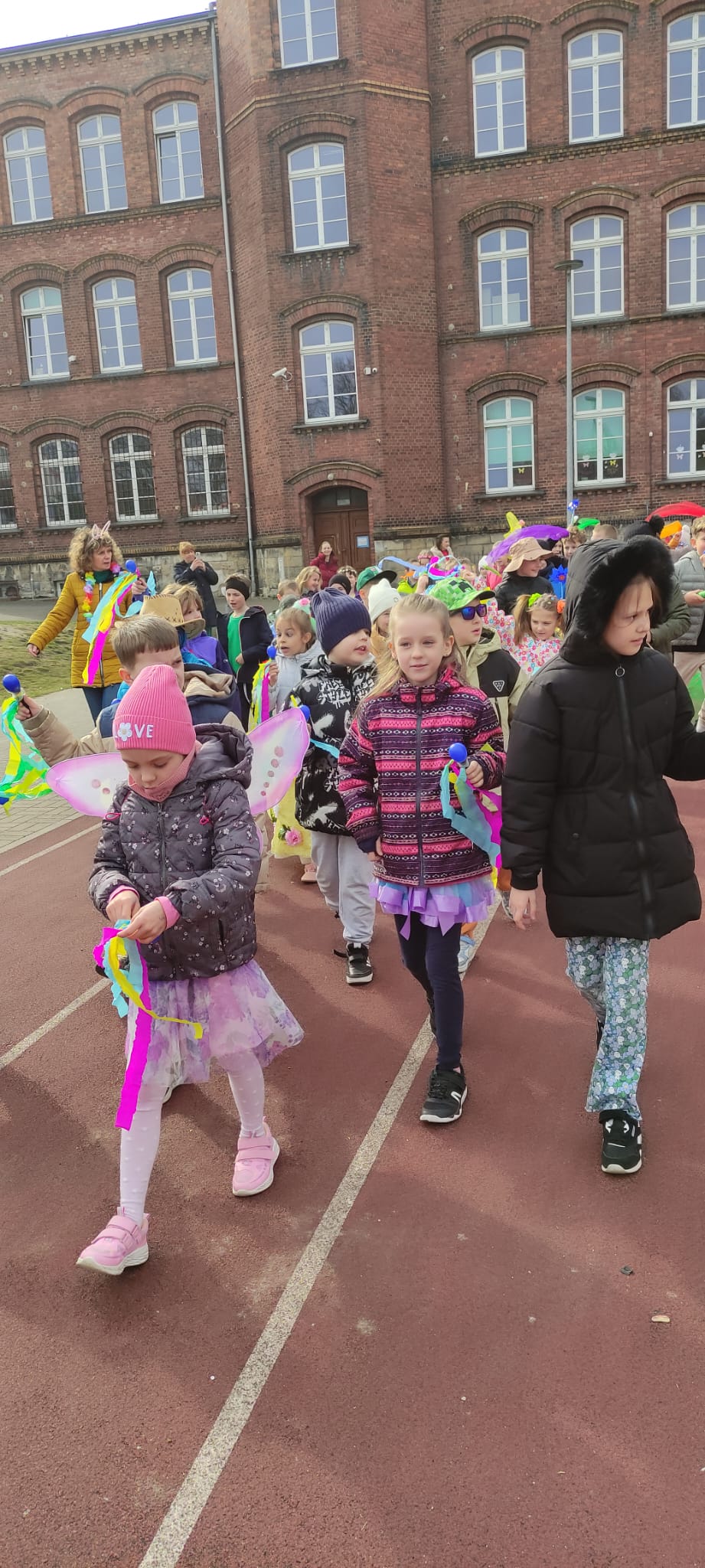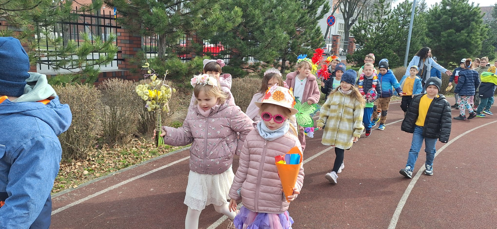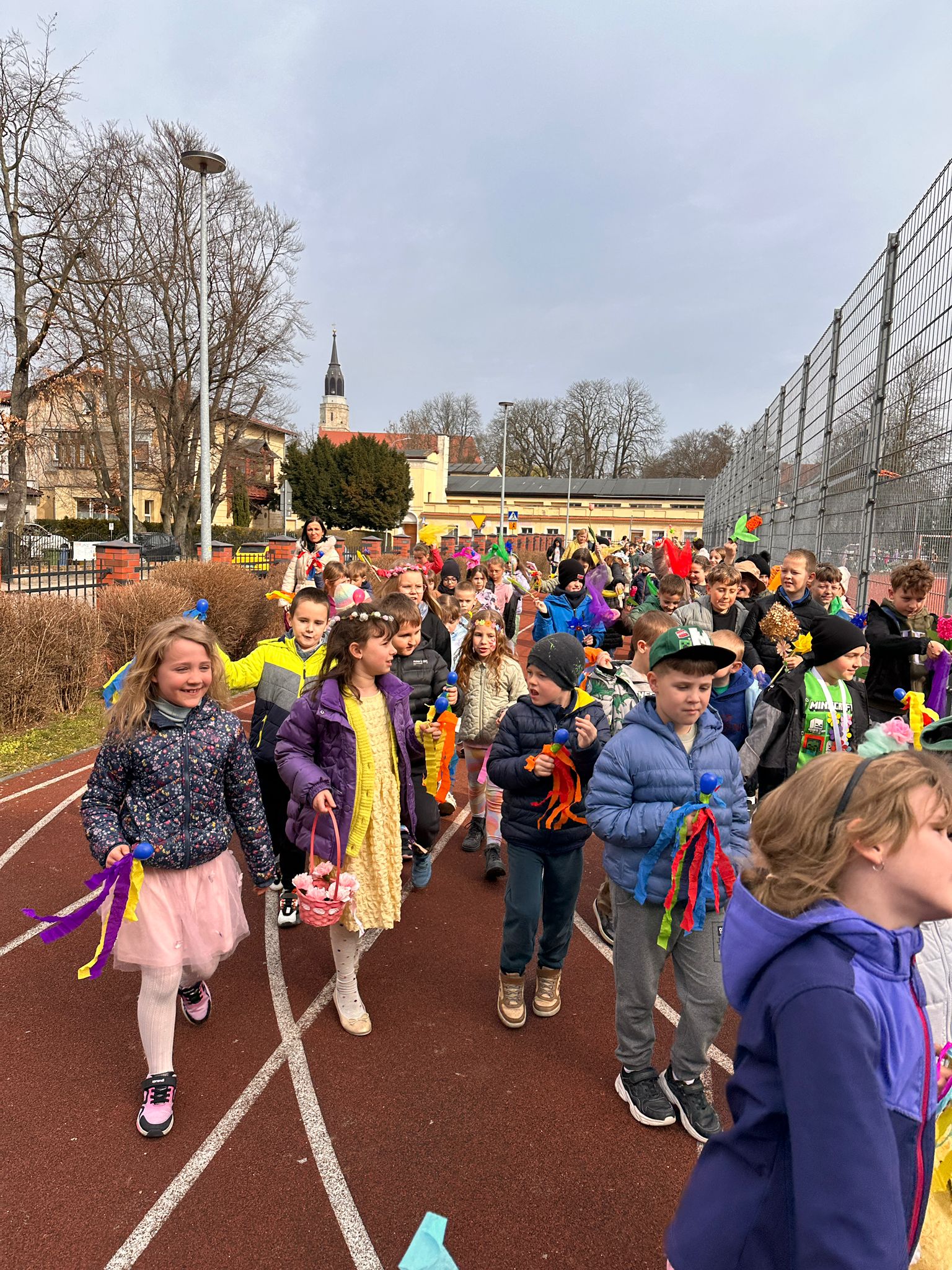 Zgodnie z naszą szkolną tradycją, 21 marca oficjalnie pożegnaliśmy zimowe kurtki i przywitaliśmy najpiękniejszą porę roku. Głównym punktem obchodów był uroczysty, wiosenny pochód wokół boiska szkolnego, który zamienił nasz obiekt sportowy w prawdziwy karnawał kolorów. Co działo się na boisku?