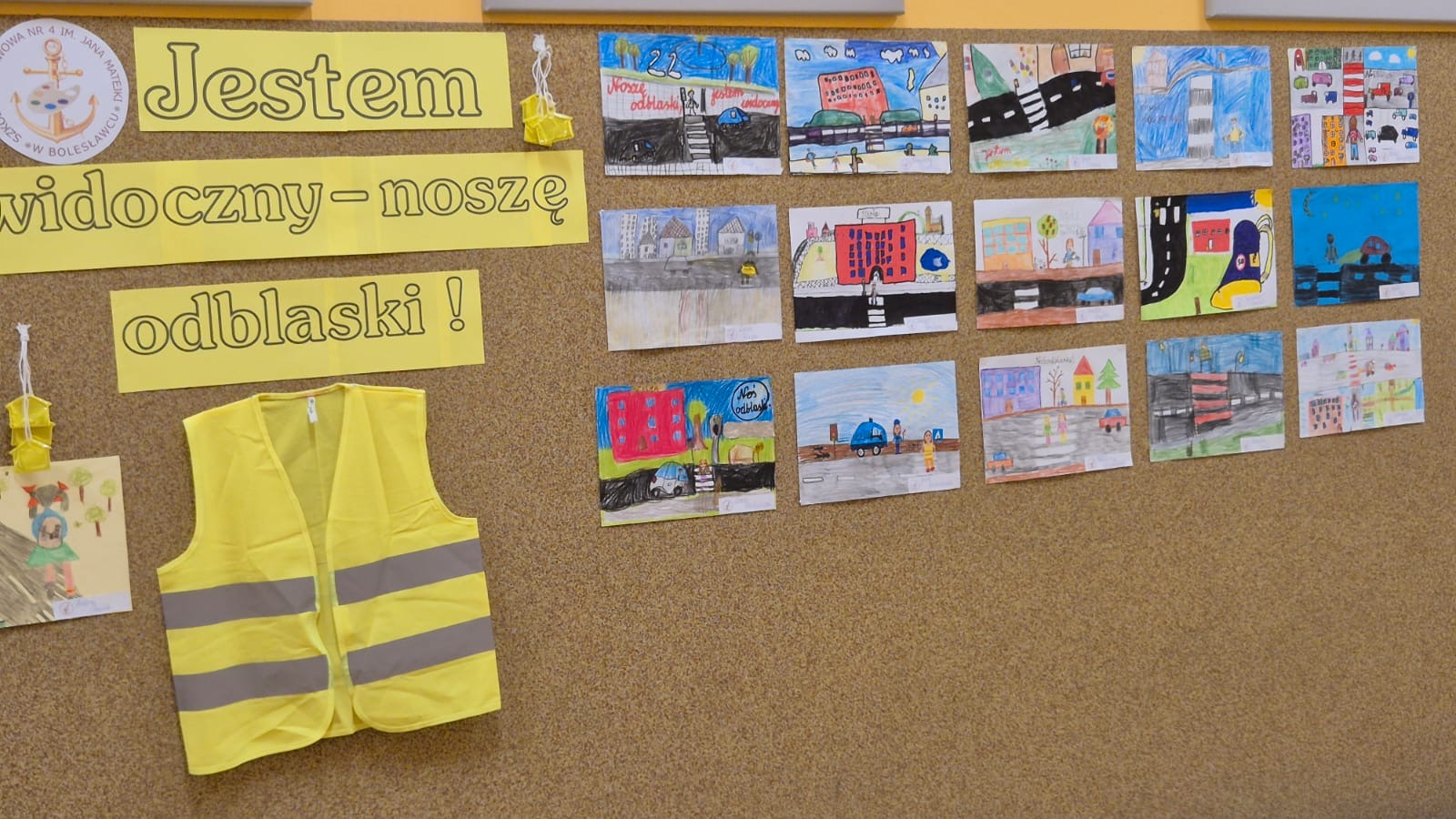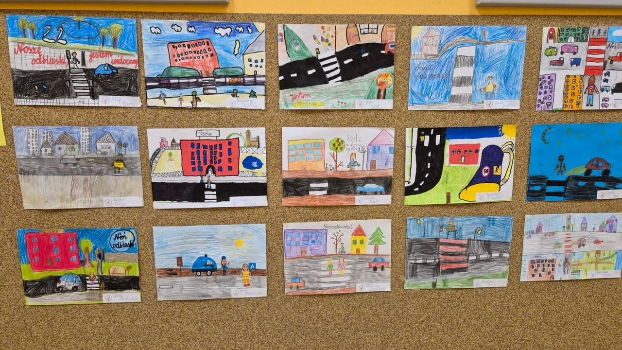 Uczniowie uczęszczający do świetlicy wzięli udział w konkursie „ODBLASKOWA SZKOŁA 2025”. Prace plastyczne uczniów zostały wyeksponowane w galerii na parterze szkoły w budynku przy ul. Mikołaja Brody. Wszystkie prace są niezwykle pomysłowe. Uczniowie trafnie przedstawili znaczenie noszenia odblasków, wykazując się dużą świadomością zagrożeń na drodze. Prace zawierają ciekawe argumenty i przykłady z życia codziennego, które przekonują do noszenia odblasków.