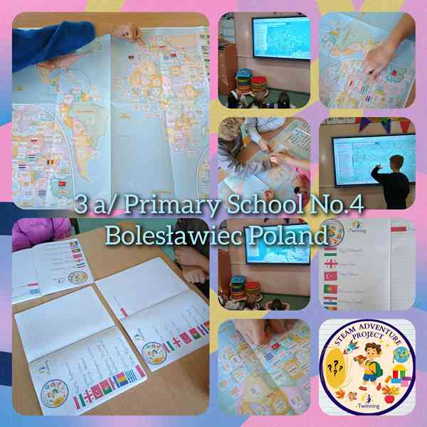 Uczniowie klasy 3a biorą udział w międzynarodowym projekcie eTwinning „STEAM Adventure”, który łączy naukę, kreatywność i współpracę ponad granicami. W projekcie spotkali się uczniowie z 30 szkół z Polski, Grecji, Portugalii, Chorwacji, Rumunii, Gruzji, Turcji oraz Węgier, tworząc barwną i inspirującą społeczność młodych odkrywców. „STEAM Adventure” to fascynujący projekt edukacyjny osadzony w spójnej historii, której przewodnikiem jest Antek Odkrywca – dziecko niezwykle ciekawe świata, marzące o karierze naukowca-podróżnika. Antek nosi plecak pełen „magicznych” przedmiotów: lupę, teleskop, globus, mapę, jabłka, kompas, klocki i notes. Przedmioty te „ożywają” na kolejnych etapach projektu, prowadząc uczniów przez nowe zagadnienia i inspirując ich do odkrywania świata metodą STEAM. Każdy temat to nowy przystanek na wspólnej edukacyjnej mapie.