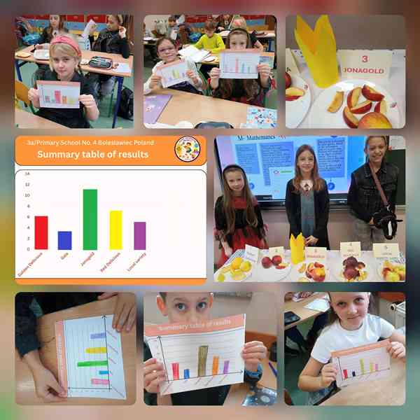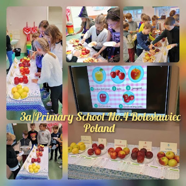 Budowaliśmy także anemometry i deszczomierze, mierząc ilość opadów i porównując wyniki z innymi szkołami. Na przełomie listopada i grudnia poznaliśmy postać Isaaca Newtona i jego słynną historię z jabłkiem. Przeprowadziliśmy doświadczenia związane z grawitacją, a jabłko stało się inspiracją zarówno do prac plastycznych, jak i międzynarodowego eksperymentu. Na podstawie wspólnego formularza wybraliśmy pięć najpopularniejszych odmian jabłek w naszych krajach, a następnie testowaliśmy je pod względem smaku, wyglądu, zapachu i innych walorów. W naszej klasie zwyciężyło jabłko Jonagold, natomiast królem jabłek całego projektu został Golden Delicious.