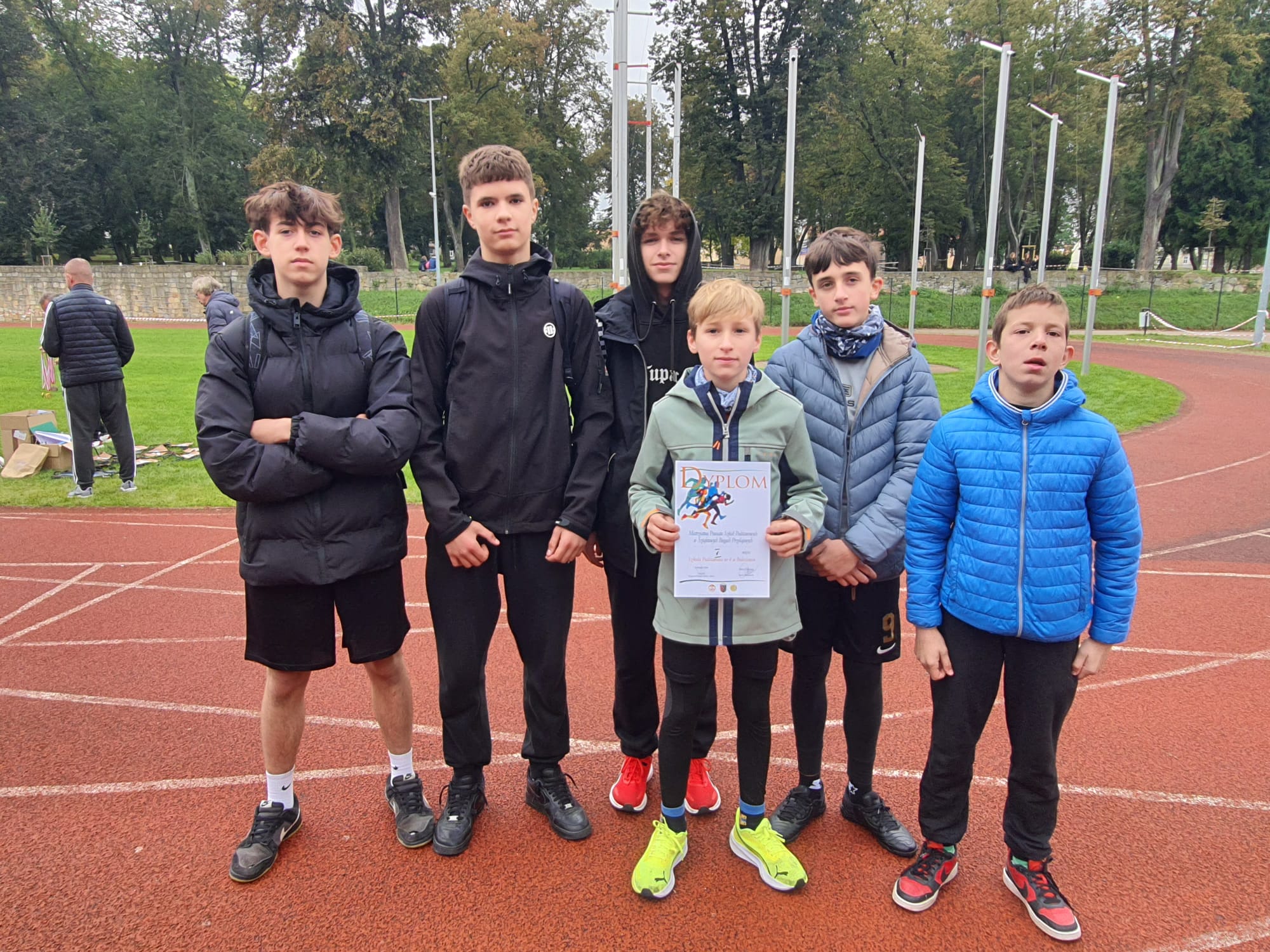 Największy sukces sprawili chłopcy z klas IV-VI, którzy wygrali sztafetę przełajową i zostali Mistrzami Powiatu. Chłopcy startowali w składzie: