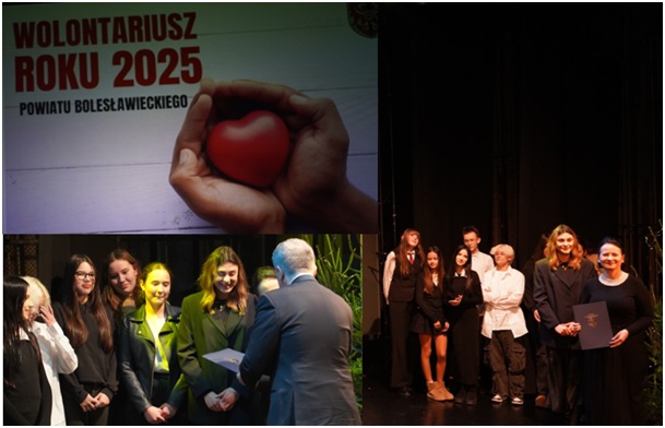 4 grudnia 2025 r. w Teatrze Starym w Bolesławcu odbyła się uroczysta gala „Wolontariusz Roku 2025 Powiatu Bolesławieckiego”. Wydarzenie zgromadziło przedstawicieli szkół, organizacji i instytucji, które na co dzień angażują się w działania społeczne i wolontariackie. Podczas gali uhonorowano osoby i grupy szczególnie zasłużone dla lokalnej społeczności, doceniając ich wrażliwość, zaangażowanie i gotowość do niesienia pomocy.