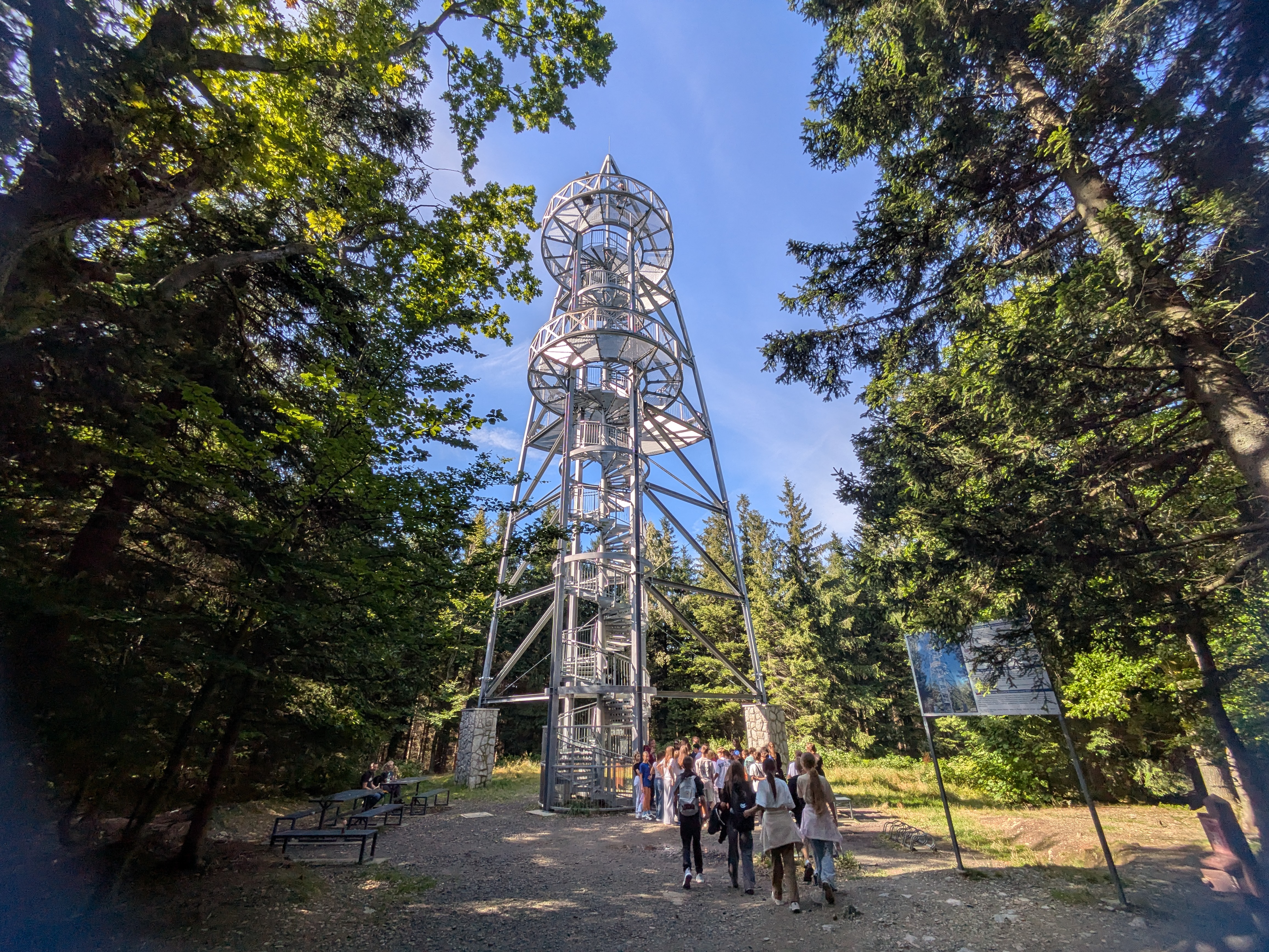 Nie mogło zabraknąć chwil pełnych emocji – weszliśmy na stalową konstrukcję wysokiej na prawie 34 m Wieży Widokowej na Młynicy, z której rozciąga się malownicza panorama Gór i Pogórza Izerskiego, a zdumieniem napawał nas widok butelki toczącej się pod górę w punkcie Anomalii Grawitacyjnej.