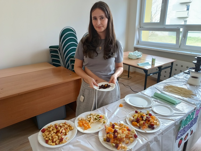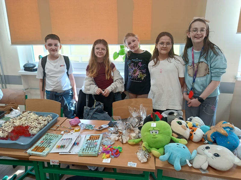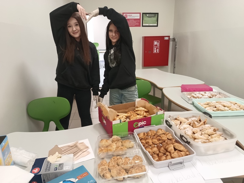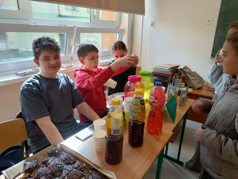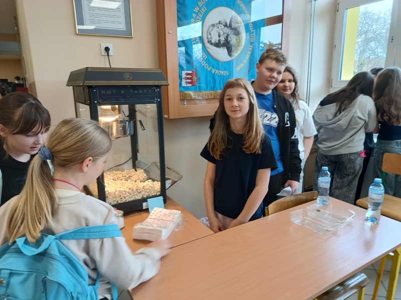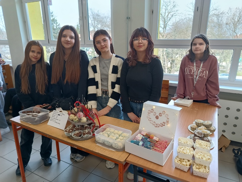 Już od rana uczniowie siedzieli jak na szpilkach, odliczając minuty do końca pierwszej lekcji. Punktualnie o 8.45, wszyscy „handlarze” z niecierpliwością i podnieceniem wystrzelili niczym z procy, by rozkładać swoje stoiska, dekorować stoły, wywieszać reklamy - słowem wszystko, co tylko można, by zwabić jak najliczniejsze grono klientów. Sądząc po efektach, cel został osiągnięty, gdyż ruch na stoiskach przypominał mrowisko. Sprzedawcy uwijali się jak w ukropie, aby zadowolić najbardziej wyrafinowane podniebienia oraz nosy, a klienci… aż mlaskali z zadowolenia (w przenośni, a czasem i dosłownie).