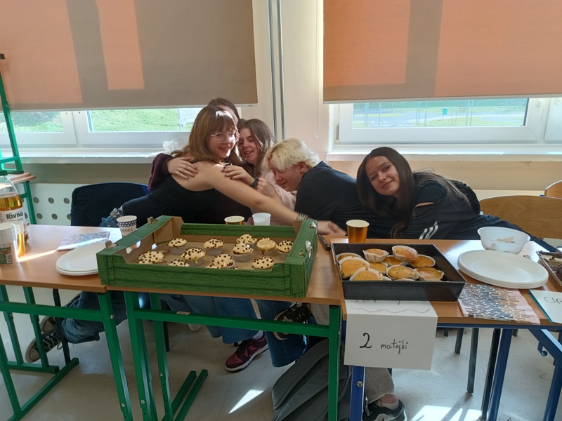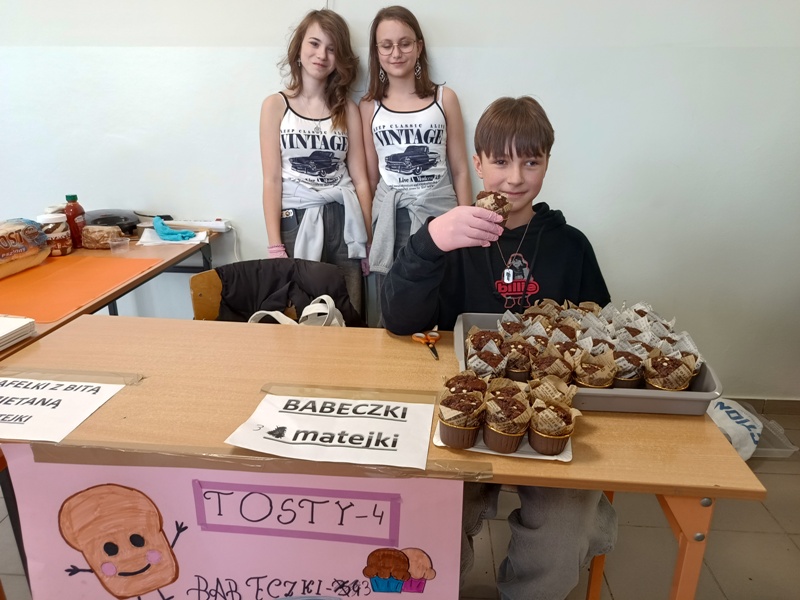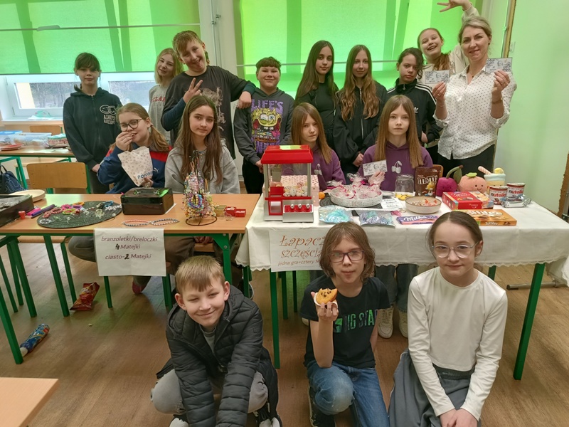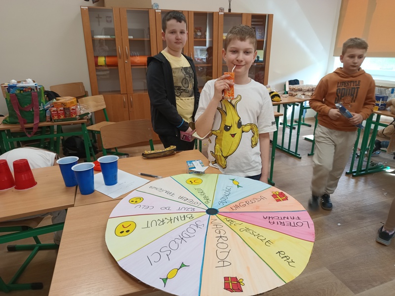 Póki co, przeliczamy skarbonę, aby sprawdzić efekt końcowy tego wspaniałego szaleństwa. Trzeba dodać, że przedsiębiorczość to także nasza mocna strona. Chyba nikt, kto obejrzy galerię z targów, nie będzie miał w tej kwestii żadnych wątpliwości. Jeszcze nie wiemy, na co wydamy zarobione matejki, ale wszyscy uczniowie przekazali anonimowo swoje pisemne sugestie podczas obrad Samorządu Uczniowskiego, więc utarg będzie na pewno z korzyścią dla szkoły oraz wszystkich jej twórców, czyli nas, Kochani :-)