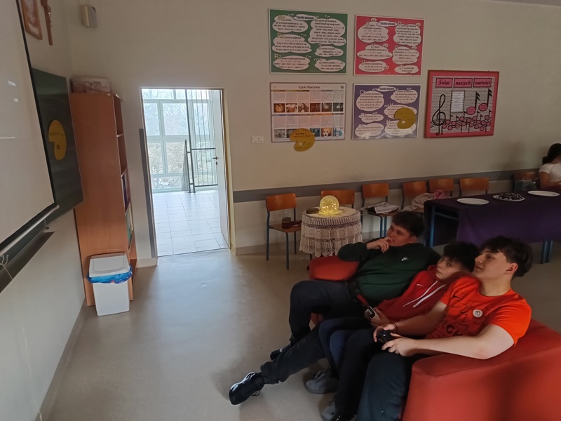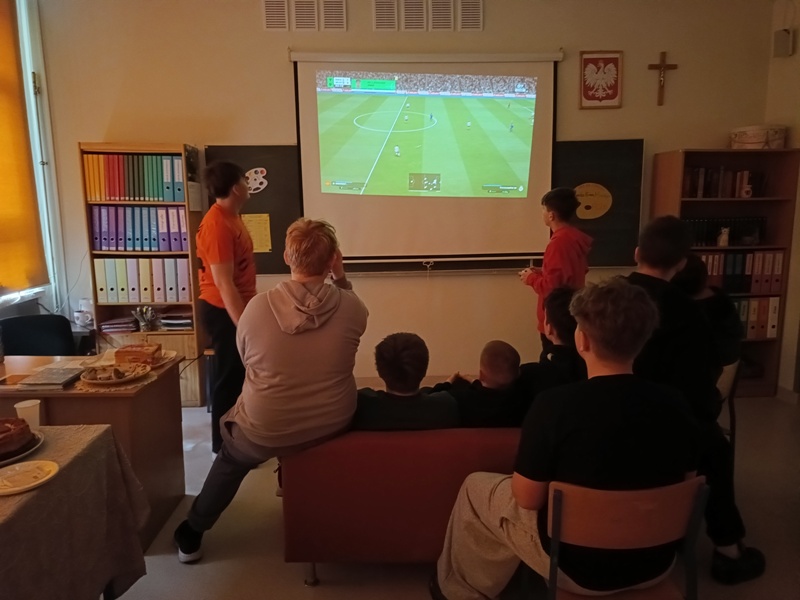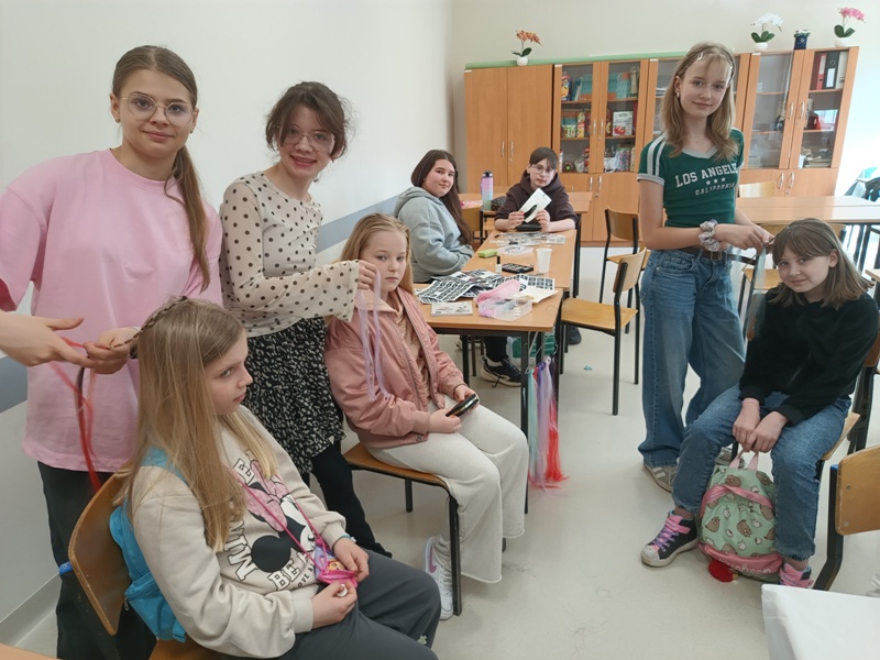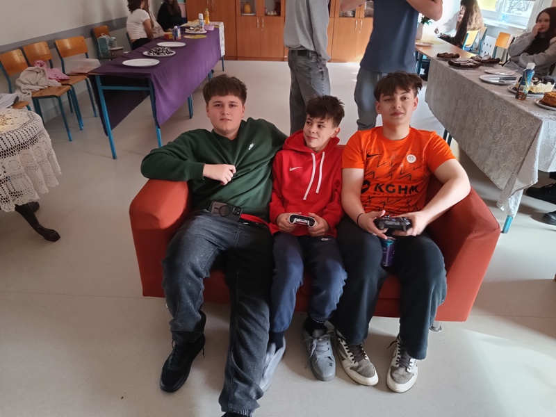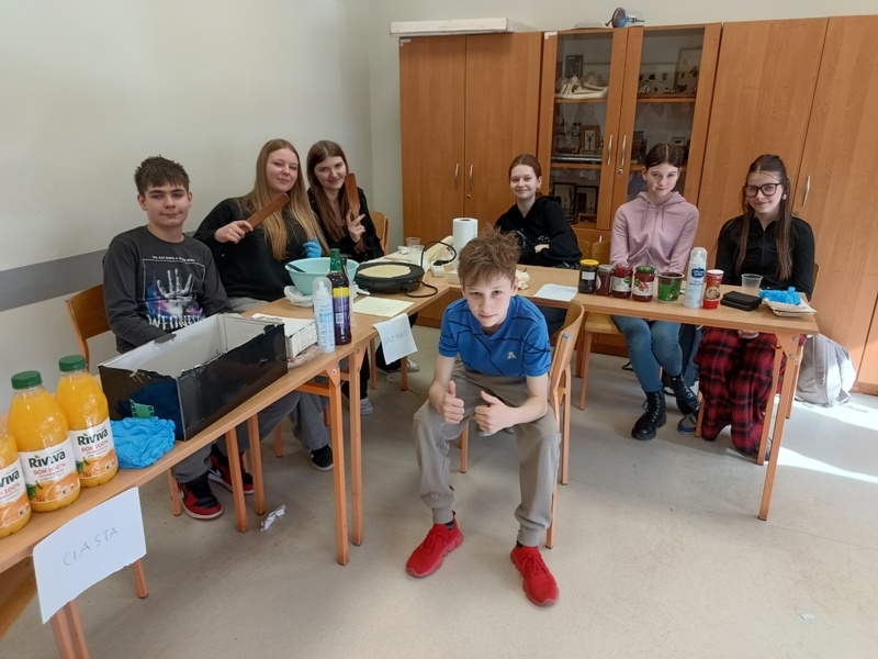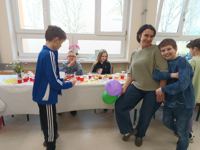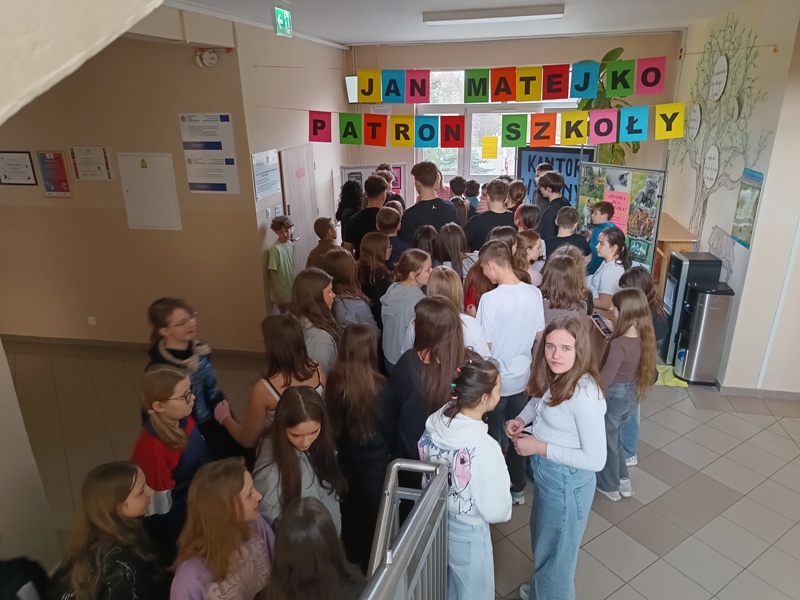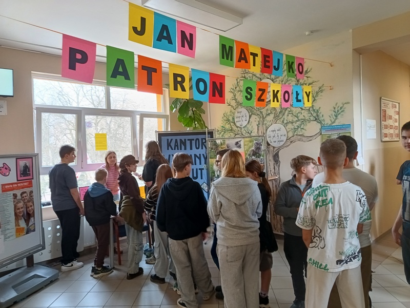 Och, jakież tam unosiły się niebiańskie aromaty… Gofry zwabiłyby chyba nawet śpiące jeszcze pszczoły, a popcorn podrywał wszystkie kiszki do marsza. Co tu dużo mówić (czy też pisać, jak na skrybę przystało), tego dnia z pewnością nikt nie chodził po szkole głodny. Wręcz można by podejrzewać, że niektórym grozi śpiączka od nadmiaru cukru, ale kto by się oszczędzał podczas Targów Matejkowskich? Nie po to całe noce Czwórkowicze spędzili przed kuchenką tudzież piekarnikiem, by odmawiać sobie odrobiny przyjemności w ten deszczowy, bury dzień. Mistrz Jan pomalowałby nam świat wszystkimi kolorami ze swej palety, ale cóż, nie mógł do nas dotrzeć w tym roku. Zapewne miał ważniejszą wizytę, choćby tę w Warszawie jego imienia, z którą właśnie się zaprzyjaźniliśmy. Niedługo będziemy pisać listy i życzenia do siostrzanej podstawówki, gdyż świętuje ona swoje 60-lecie (jesteśmy starsi!), a w przyszłości… kto wie, może zaprosimy jej uczniów na nasze słynne Matejkowskie Targi?