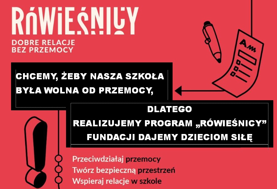 RÓWIEŚNICY to program profilaktyczny opracowany przez Fundację Dajemy Dzieciom Siłę wraz z ekspertami z zakresu psychologii, pedagogiki i cyberbezpieczeństwa.