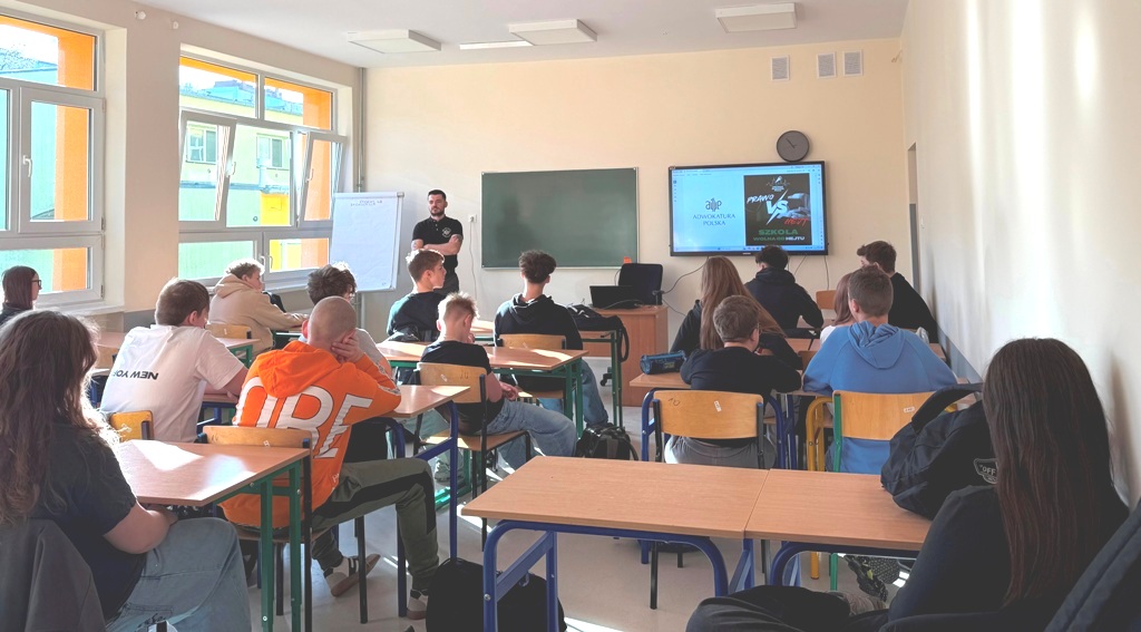28 października 2025 r. wszystkie klasy ósme miały okazję wysłuchać prelekcji Pana Mateusza Lombardo - prawnika ze Złotoryi. Spotkanie odbyło się w ramach IV edycji akcji - Adwokaci rozjaśniają prawo, pod nadzorem NRA, a jego temat brzmiał: „Prawo vs. Hejt. Szkoła wolna od hejtu".
