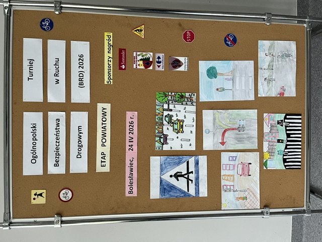 W piątek 24 kwietnia 2026 roku a naszej szkole odbył się etap powiatowy Turnieju Bezpieczeństwa Ruchu Drogowego 2026. Organizatorem zawodów był Wydział Ruchu Drogowego Komendy Powiatowej Policji i Szkoła Podstawowa nr 4 im. Jana Matejki.