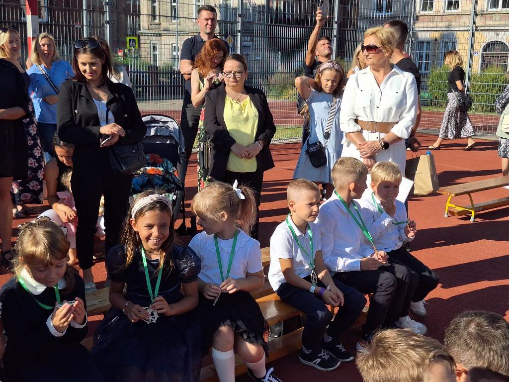 Po odśpiewaniu hymnu narodowego, życzeniach złożonych przez Panią Dyrektor oraz przedstawiciela Rady Rodziców, uczniowie klas pierwszych złożyli ślubowanie, obiecując pilnie się uczyć, szanować nauczycieli i kolegów oraz godnie reprezentować szkołę.
