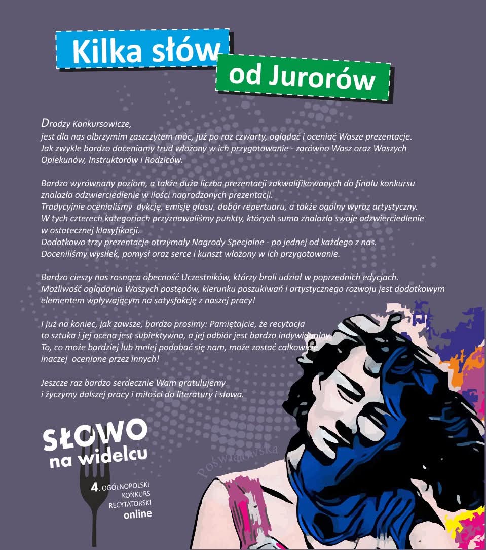 Z wielką radością informujemy, że nasza uczennica z klasy VIc, Emilia Kalinowska, osiągnęła spektakularny sukces w Ogólnopolskim Konkursie Recytatorskim SŁOWO NA WIDELCU!