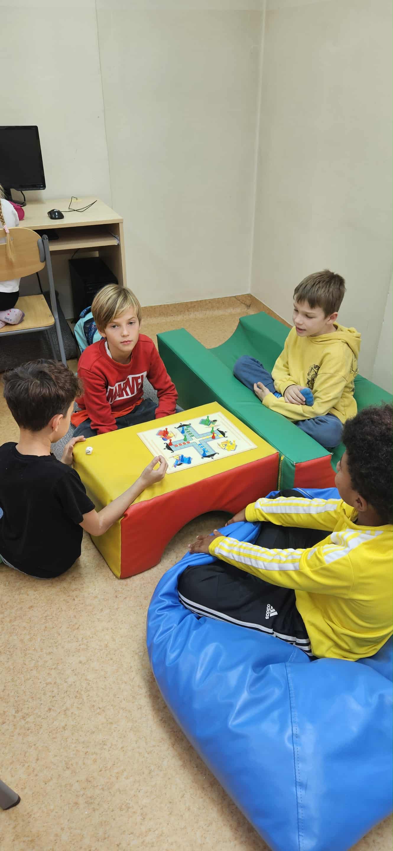 W czasie pochmurnej pogody świetlica staje się przestrzenią pełną pomysłów. Sięgamy po ulubione gry planszowe – królują warcaby, szachy i niezmiennie popularny wirus, który zawsze budzi mnóstwo emocji i radości. Dzieci uczą się zasad fair play, cierpliwości, a przy okazji – świetnie się bawią.