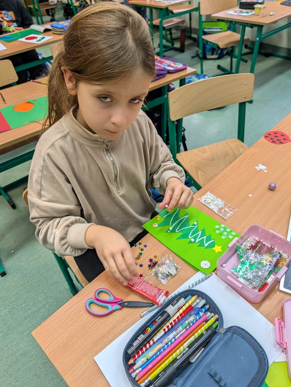 Uczniowie wykonując kartki wykazali się kreatywnością, a przede wszystkim poczuli magię czynienia dobra.