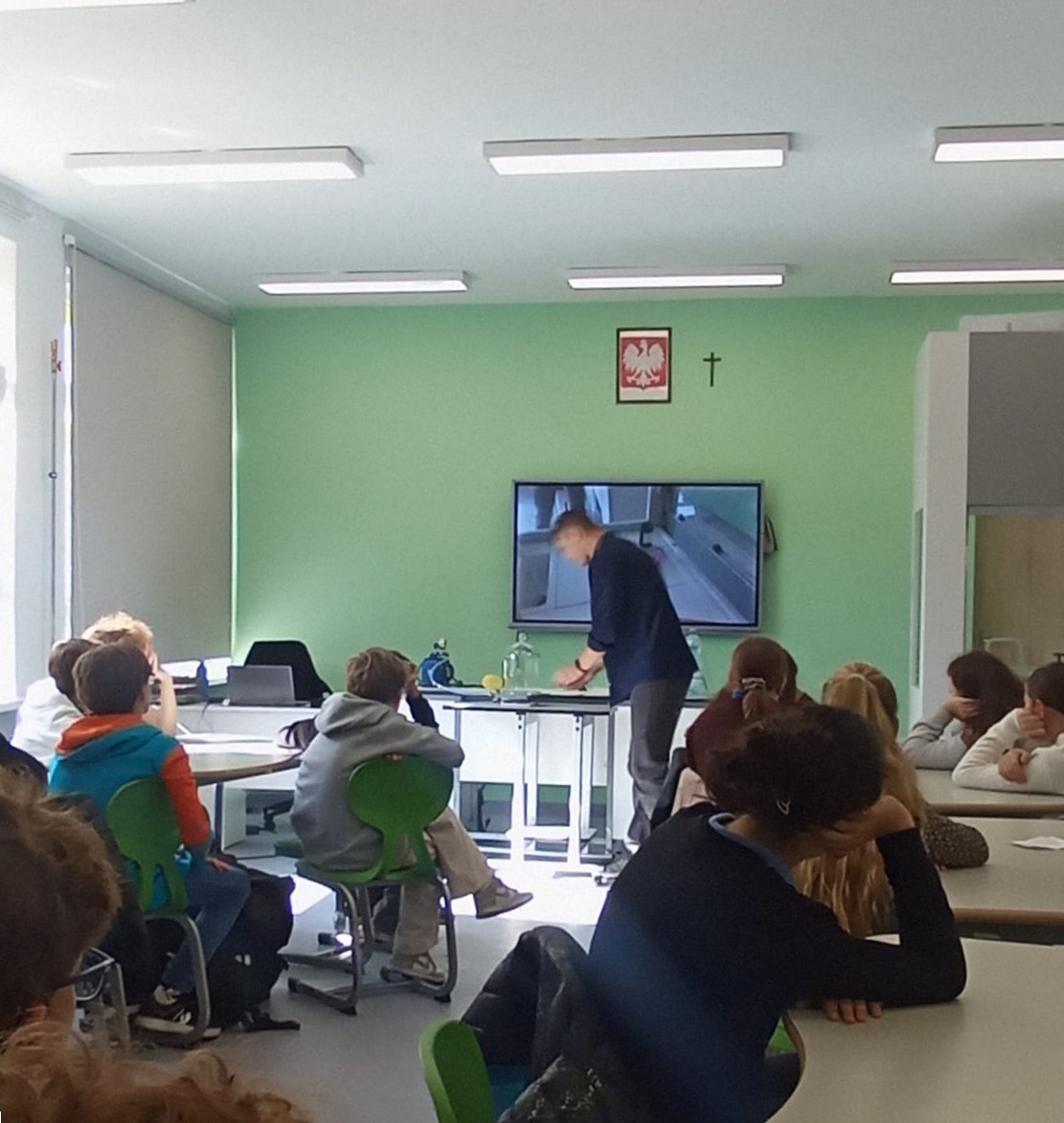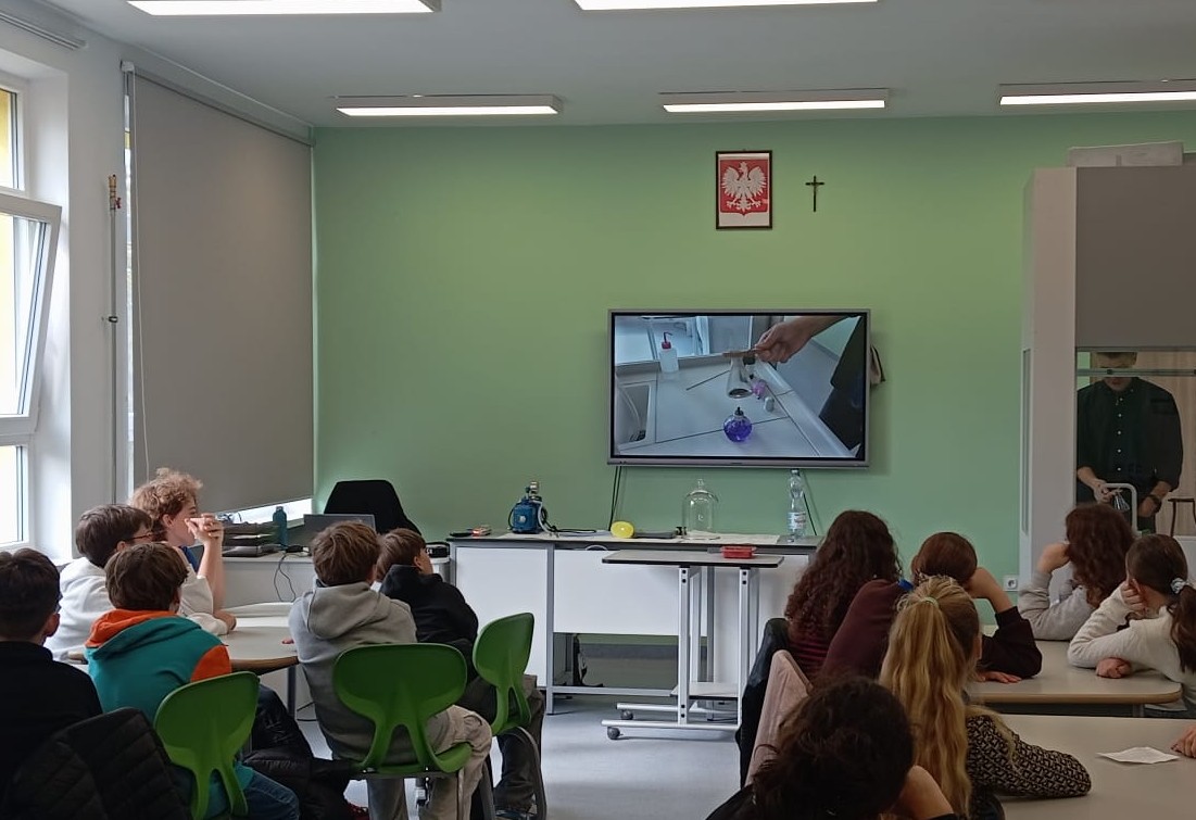 W poniedziałek, 29 września, odwiedziła nas klasa 7a ze Szkoły Podstawowej Zakonu Pijarów w Bolesławcu. Uczniowie, wraz z wychowawczynią, Panią Alicją Sabadasz oraz Panem Andrzejem Rudzińskim, nauczycielem fizyki uczestniczyli w lekcji łączącej elementy chemii i fizyki.