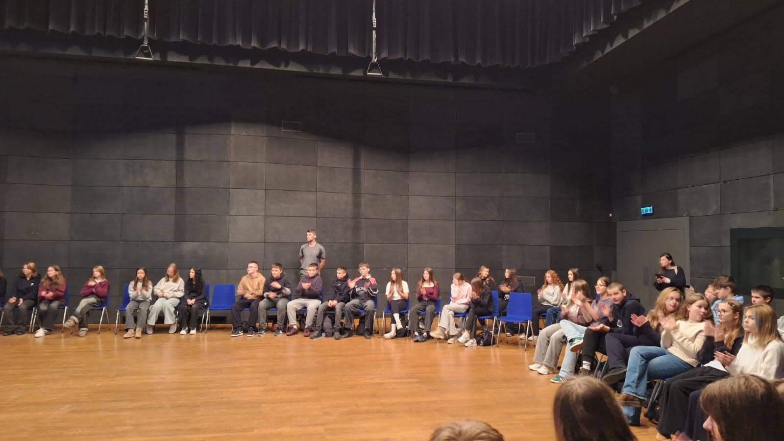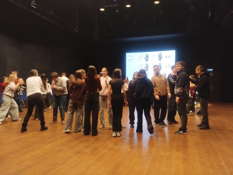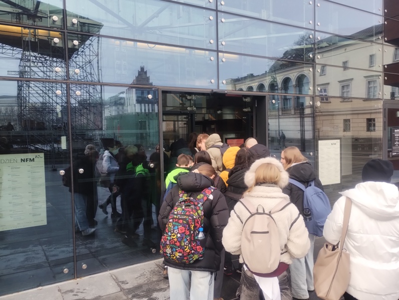 Pierwszym punktem programu była wizyta w Narodowym Forum Muzyki im. Witolda Lutosławskiego, gdzie zwiedzaliśmy ten imponujący obiekt oraz mieliśmy okazję zobaczyć fragment próby odbywającej się w jednej z sal. Następnie uczestniczyliśmy w ciekawych i bardzo energicznych warsztatach Body Percussion, (gra na własnym ciele), które pozwoliły uczniom poznać niezwykłe sposoby tworzenia rytmu z wykorzystaniem własnego ciała.
